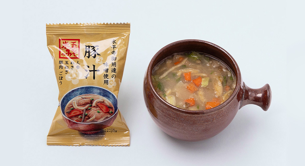 米五さんが創業されたのはなんと天保2年!昭和45年からは大本山永平寺の味噌蔵を預かるほど品質や実績に信頼があり、長年多くの人に愛されてきたお味噌屋さんです。今回の商品「越前おみそ汁」シリーズは、永平寺の味噌蔵の味を再現した「蔵みそ」というお味噌が使われています。